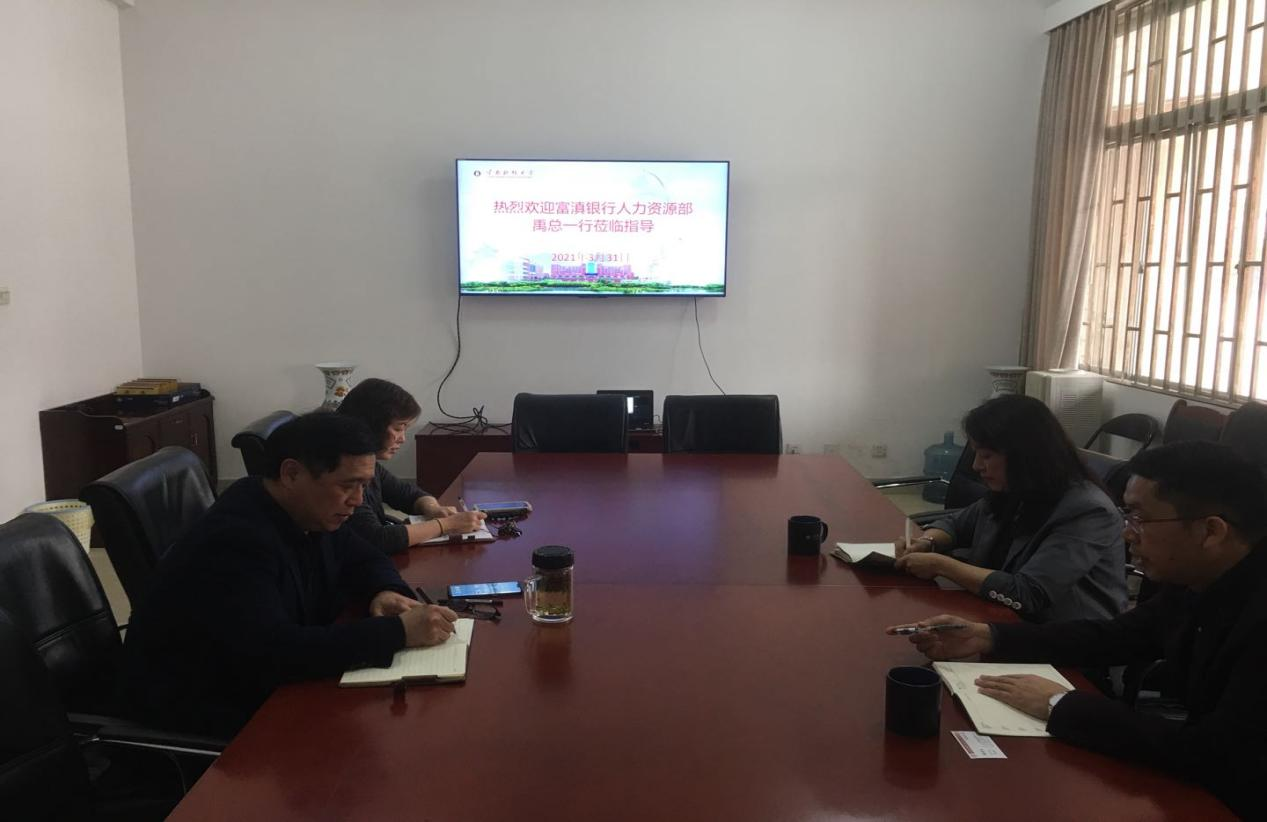 禹宏熙从富滇银行干部队伍建设、在职培训、未来发展规划等方面介绍了银行的基本情况,表达了人才联合培养、人才招聘方面的合作意向。