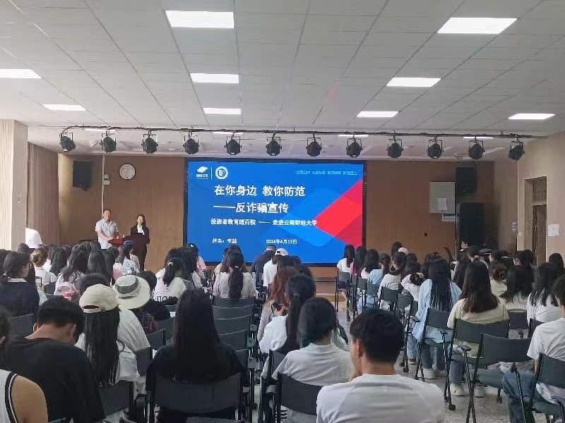 近日,为提高师生预防电信网络诈骗意识和能力,筑牢校园防诈防骗安全防线,保卫处联合中华职业学院在安宁校区举办防范电信网络新型违法犯罪专题宣讲活动。罗白派出所所长丁永波,国信证券云南省分公司网络运营顾问、投教讲师李喆受邀为师生作反诈宣传。