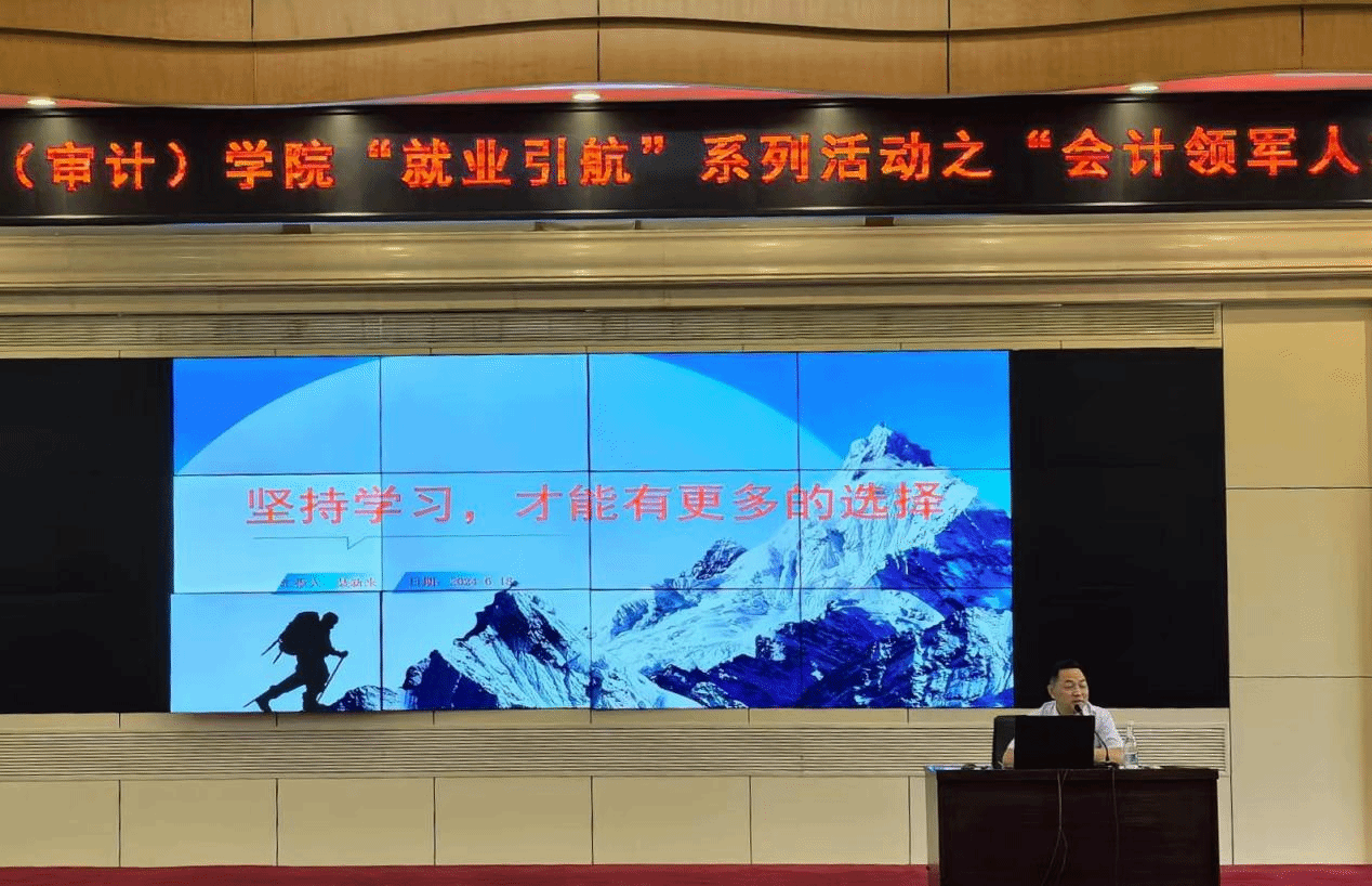 郭培培以“塑造未来,启航职场”为题,分别从会计师事务所的选择、事务所岗级设置和薪酬体系进行了分析,解读了云南省注册会计师行业现状。他表示,要增强机遇和风险意识,抓住行业机遇,应对挑战。他鼓励同学们投身实践,提升专业素养和综合能力,适应行业需求。