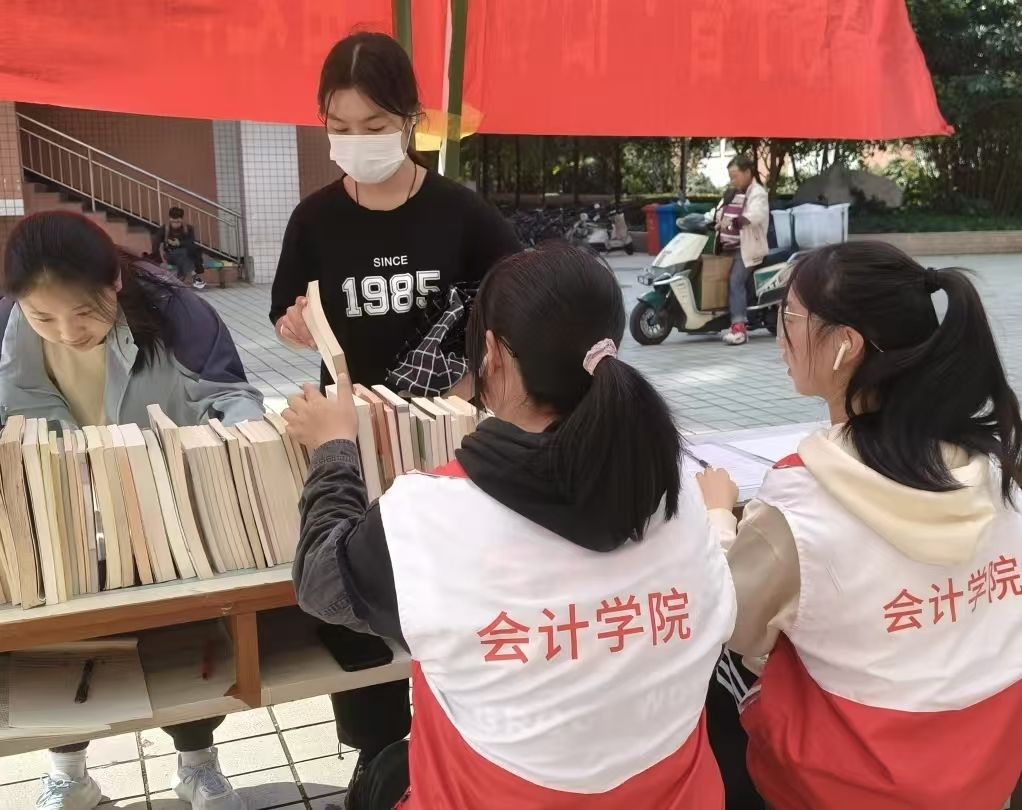 “毓德于智·旧书育新苗之陶海拾贝”志愿服务活动。活动期间,志愿者们协助登记旧书信息,帮助同学们交换书籍。活动不仅响应了“节约资源,保护环境”号召,提高书籍利用率,又以书会友,展现财大学子的书香气质与分享精神。