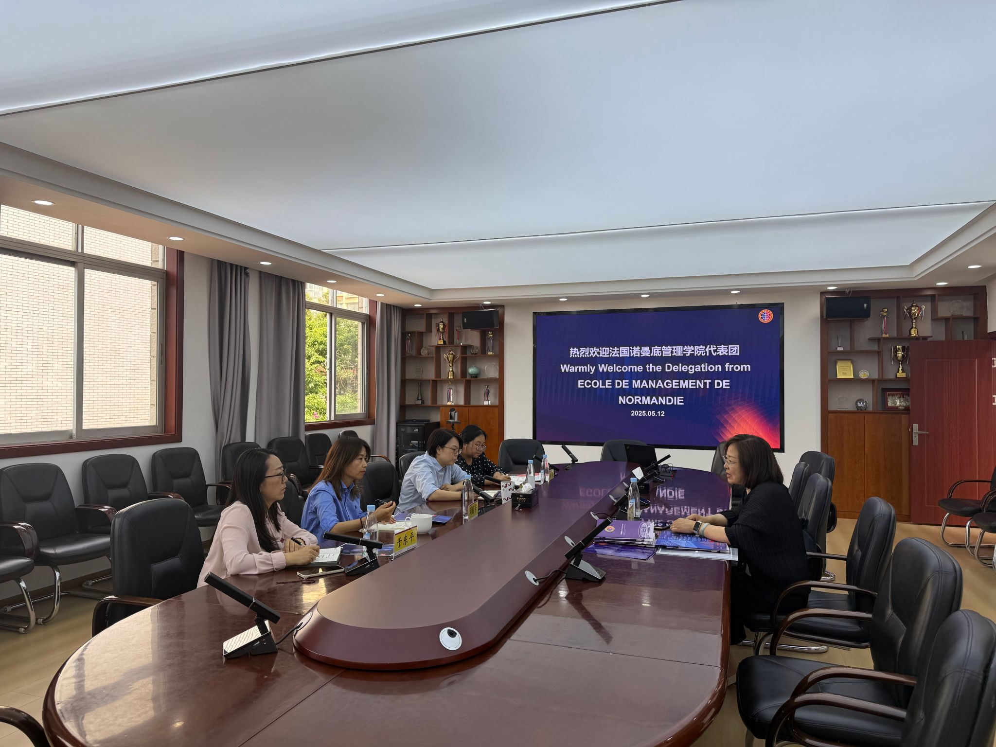 张俊婕对张亚丽来访表示欢迎,并回顾了与诺曼底商学院的合作历程,介绍了学院三个本科项目的办学特色。刘丽芳介绍了学院硕士研究生项目的办学情况,就学分与学位项目提出合作建议。