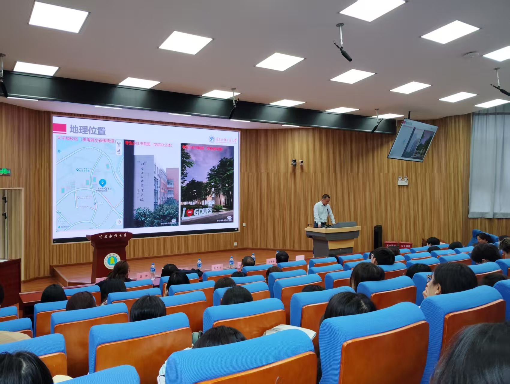 广东外语外贸大学研究生院副院长张秀三为同学们详细介绍了学校的整体发展及近年来研究生招录情况,其他老师分别介绍了各学院的具体情况、特色优势、对口的研究生招录专业及研究生未来发展前景等内容,为同学们提供了极具参考价值的报考信息。在互动答疑环节,同学们就个性化的考研困惑、报考应注意问题等与老师们展开深入交流。