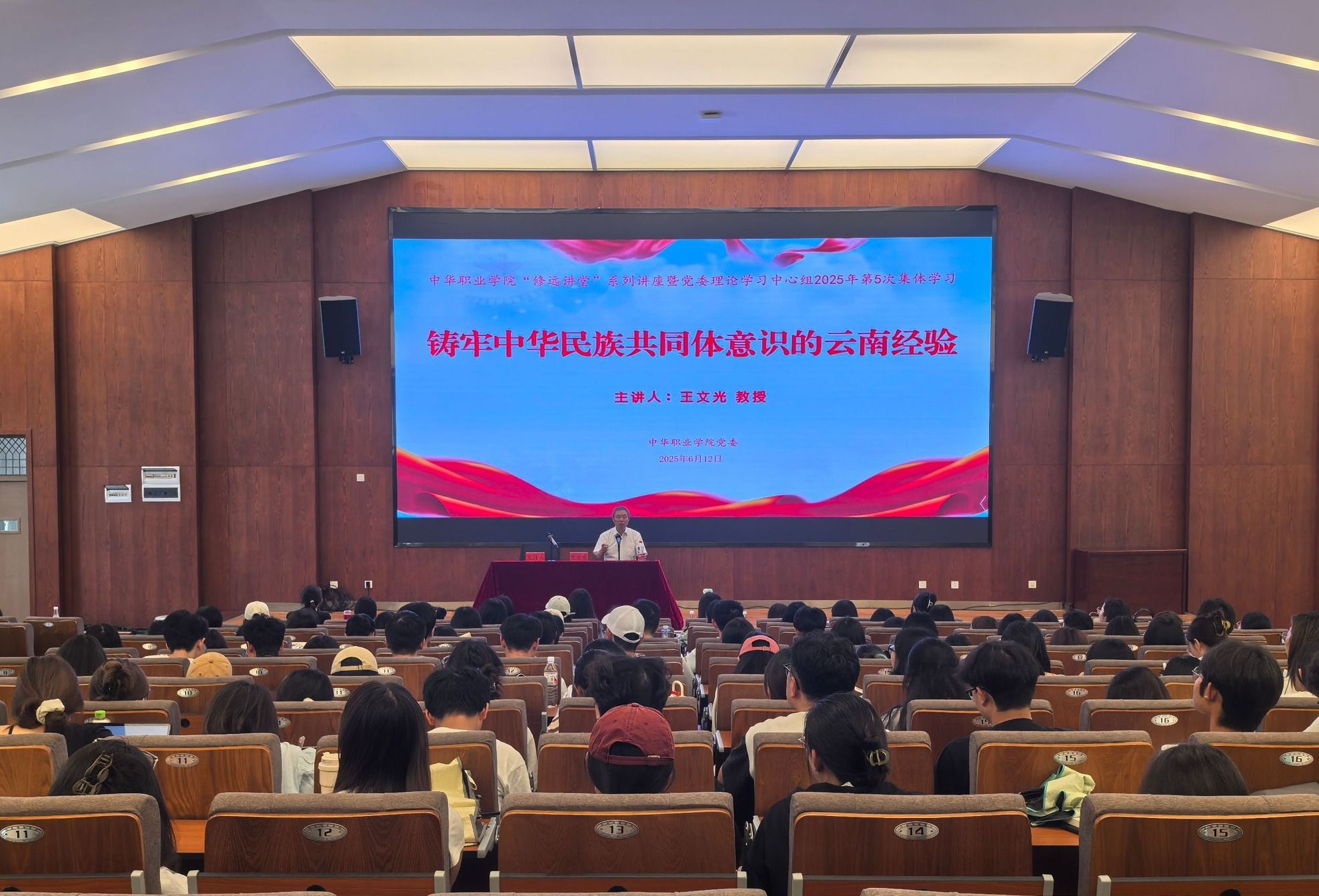 6月12日下午,云南大学教授、博士生导师王文光应邀到中华职业学院讲授《铸牢中华民族共同体意识的云南经验》专题讲座。
