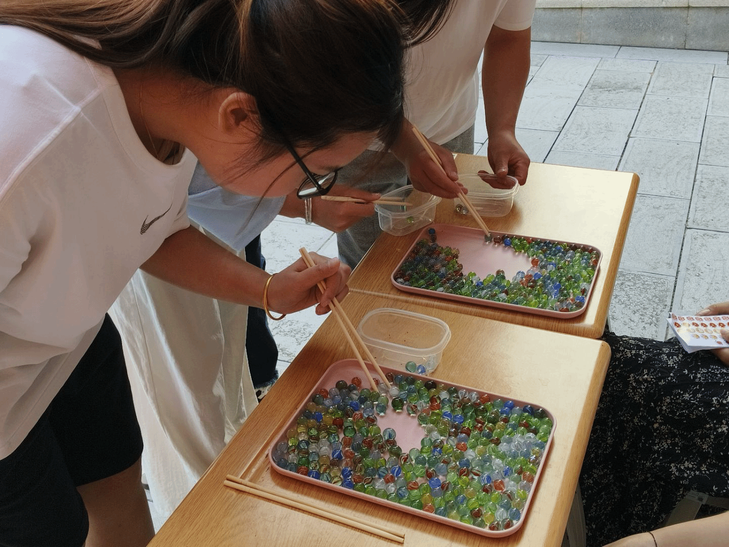 活动包含绘画创作、文化体验、游戏互动和手工制作4大区域30个特色项目。书法展示区的墨香四溢吸引师生驻足,传统射艺体验区妙趣横生,棋艺对弈区展现智慧交锋,而融合书法艺术的漆扇制作、创意拼豆和传统扎染等互动项目参与度高,营造了浓厚的传统文化氛围。