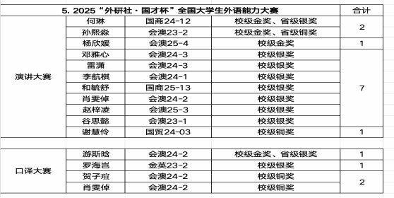 国际工商学院学子在全国大学生外语能力大赛云南省决赛中获佳绩2025年“外研社·国才杯”“理解当代中国”全国大学生外语能力大赛云南省决赛于近日举行,bat365官网国际工商学院学子荣获2银2铜。何琳与孙熙淼分获演讲大赛银奖及铜奖,游斯晗获口译大赛银奖,孙蕴玮获短视频大赛铜奖。