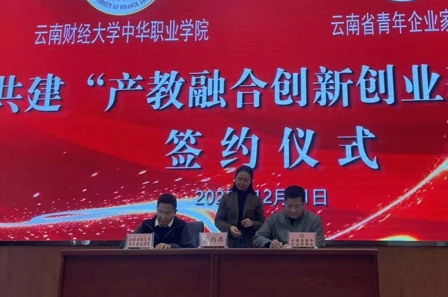12月11日,中华职业学院与云南省青年企业家商会在安宁校区举行共建“产教融合创新创业基地”签约仪式暨企业家进校园活动。