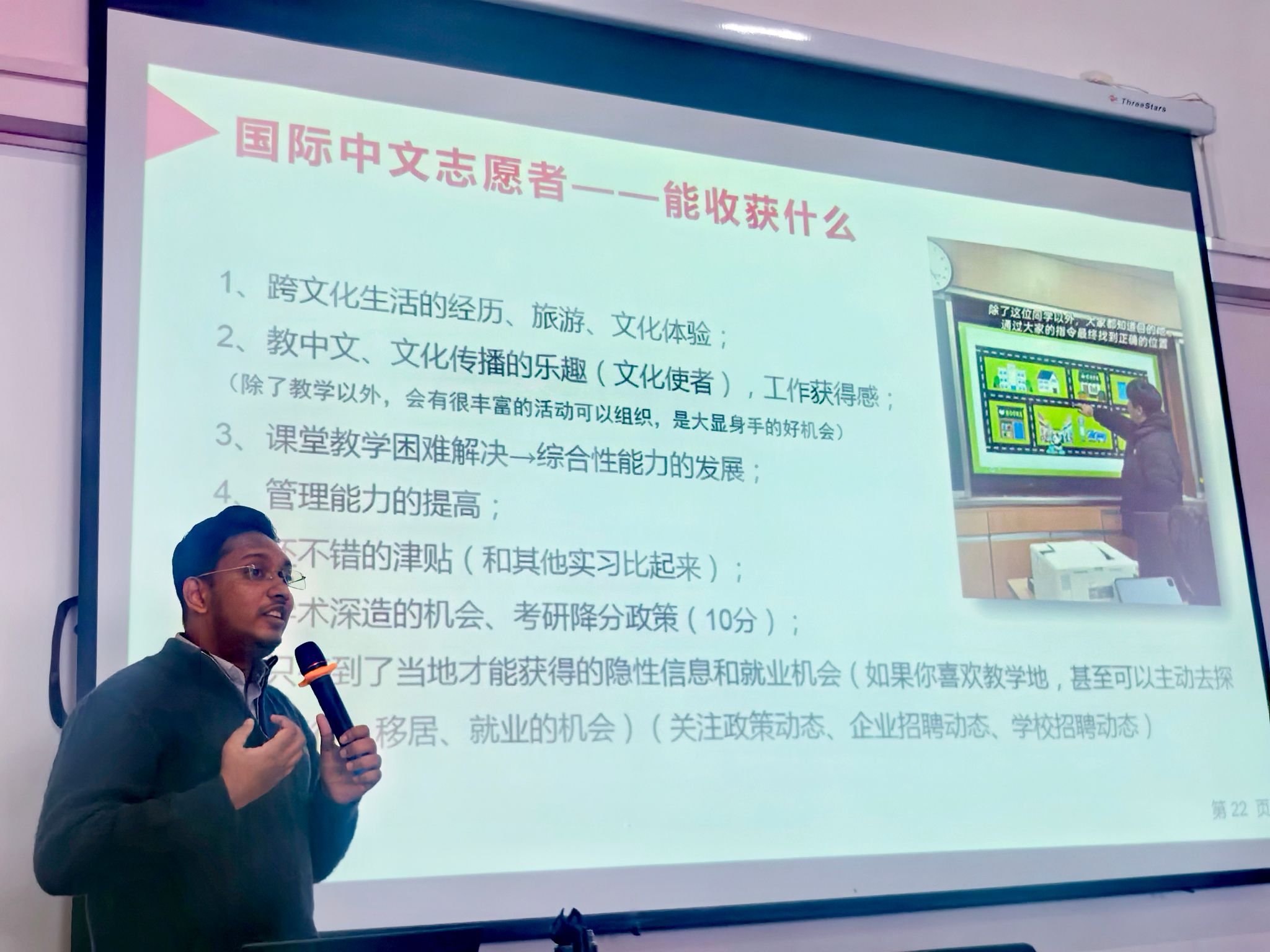 安喜乐认为,当前全球中文教育需求持续增长,商业价值日益凸显。他鼓励同学们在实践中持续学习、不断反思,逐步提升专业能力,积极投身国际中文教育事业,承担文化交流与传播的使命,形成“从中文看世界,站在世界看中国”的跨文化视野,适应国际中文教育领域的发展变化。
