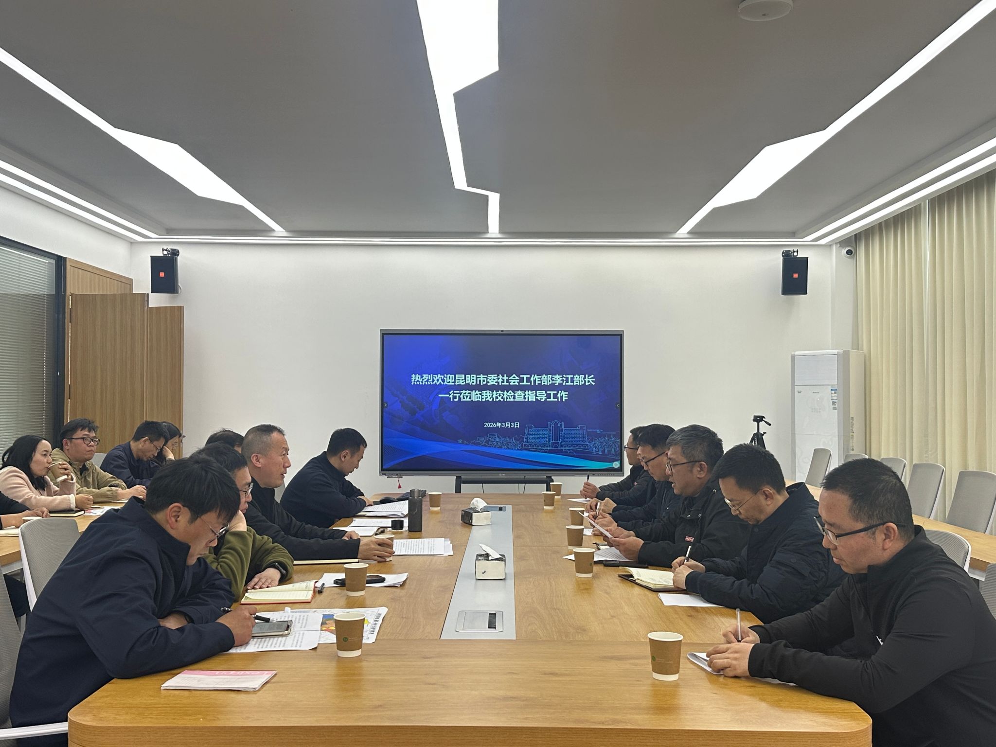 3月3日,昆明市委社会工作部部长李江一行到bat365官网,实地考察学校社区居委会、云财“一站式”学生中心及心理教育与咨询中心,就单位型社区建设及“一站式”学生社区管理等工作开展专题调研。副校长彭强出席相关活动。