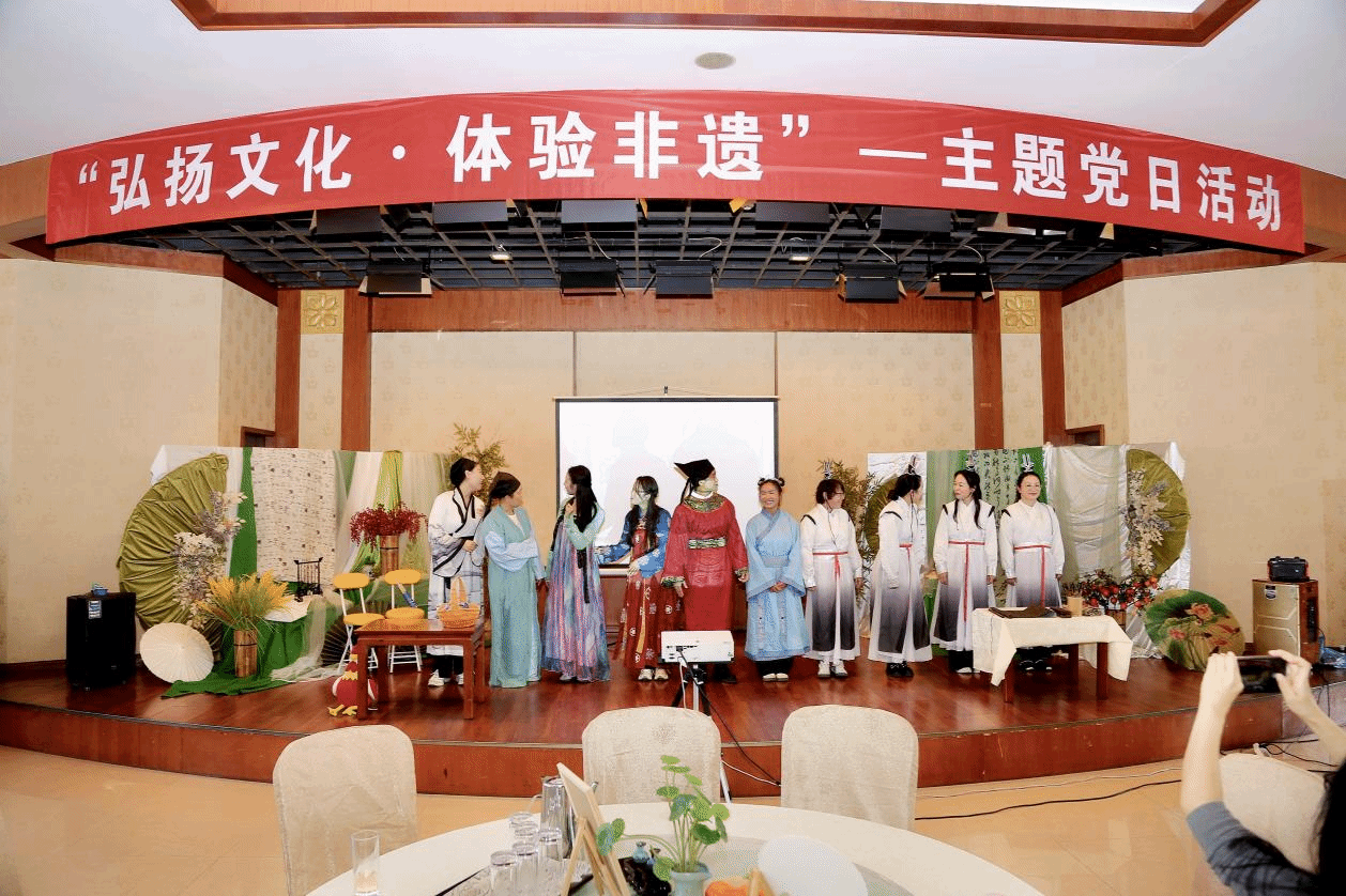 下午16:00,集团第二、三党支部在海棠宴会厅联合举办“弘扬文化·体验非遗”主题党日活动,共同探寻非遗故事,表演情景舞台剧《过桥米线的传说》,带来了一场视觉与听觉的双重盛宴。