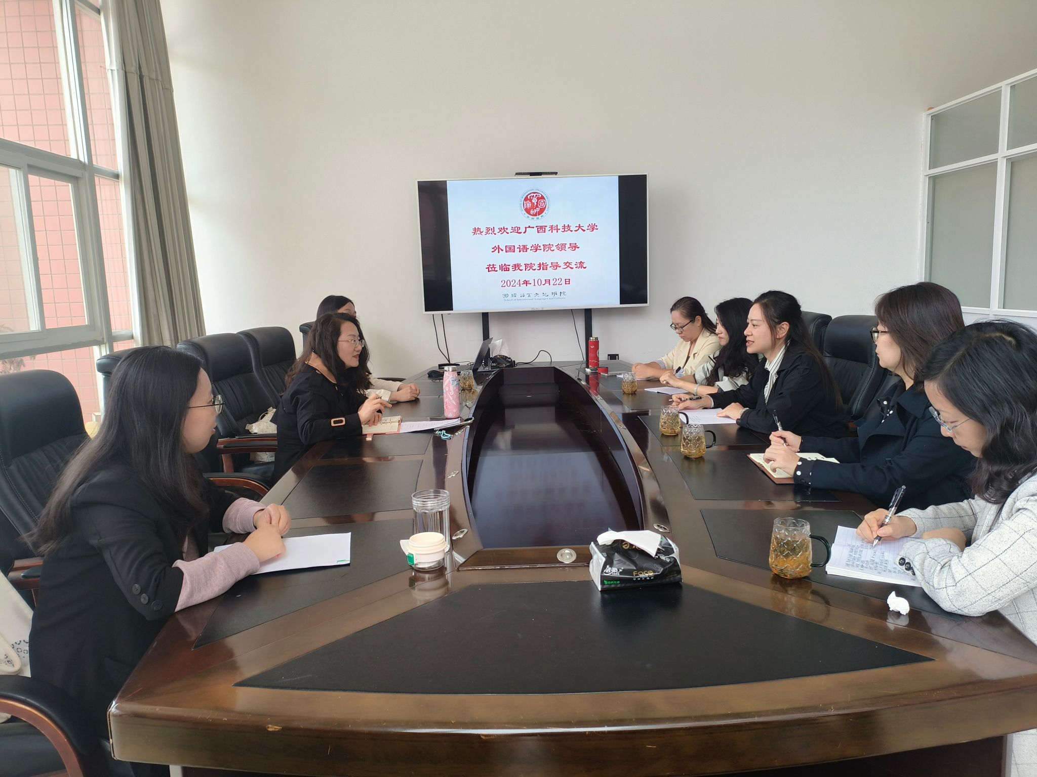 10月22日下午,广西科技大学外国语学院副院长谭玮一行5人到bat365官网国际语言文化学院调研交流,国际语言文化学院院长刘代容、副院长曾骞与来访人员举行座谈交流。