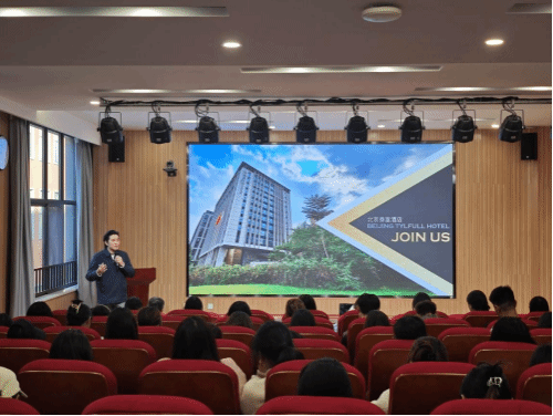 座谈会后,校企双方在齐远楼220学院报告厅开展实习就业集中推荐宣讲会,共70余名毕业生参会。北京泰富酒店、云南行走时光文化传播有限公司、链上智游(云南)文旅发展有限公司、云南省风情国际旅行社有限公司分别介绍了各自企业的情况和人才需求,表示将积极开拓岗位为毕业生就业提供优质资源,确保毕业生留得住、能发展。