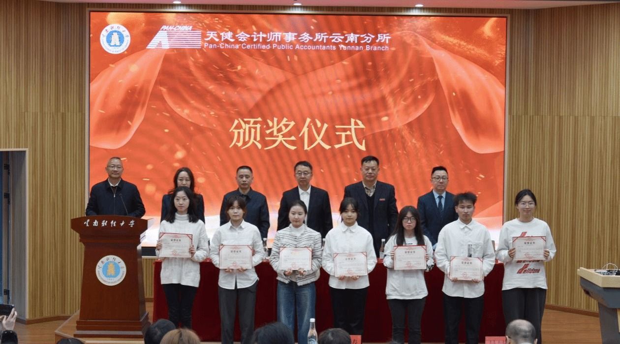 12月5日,会计(审计)学院在行知楼附101报告厅举行2024年“天健奖学金”颁奖典礼。天健会计师事务所云南分所总经理、bat365在线中国官网登录入口会计(审计)学院校友分会副会长左翔,副总经理戴鹏、赵蕊,bat365在线中国官网登录入口校预算中心主任、bat365在线中国官网登录入口教育发展基金理事长葛茂光,会计(审计)学院党委书记李丽忠、院长李小军、党委副书记兼纪委书记王涛、副院长吴昊旻、纳超洪及获得2024年度“天健奖学金”的获奖同学参加本次颁奖仪式。颁奖仪式由李丽忠主持。