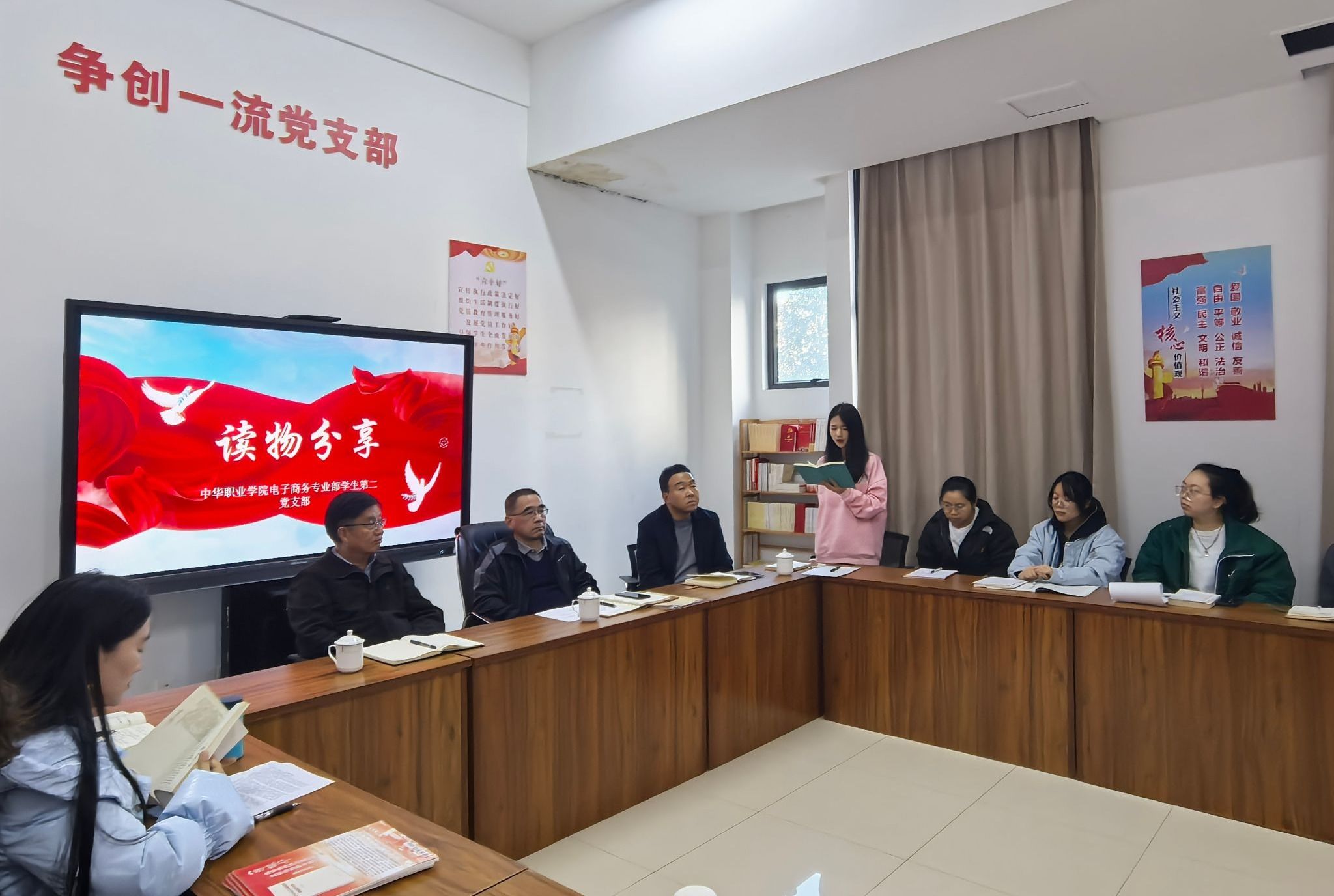 下午,胡海彦巡听了电子商务专业学生第二党支部“实现就业优先战略,促进高质量充分就业”专题党课,听取了支部毕业生党员就业情况汇报,并参与了支部组织开展的读书分享会。他鼓励同志们发挥先锋模范带头作用,积极响应“三进一出”倡议,走出宿舍,走进教室、走进图书馆、走进运动场,同时进一步提升经典书籍的研读,培养乐观向上的生活态度,找准人生定位,在能力范围内做一个对社会有用的人。