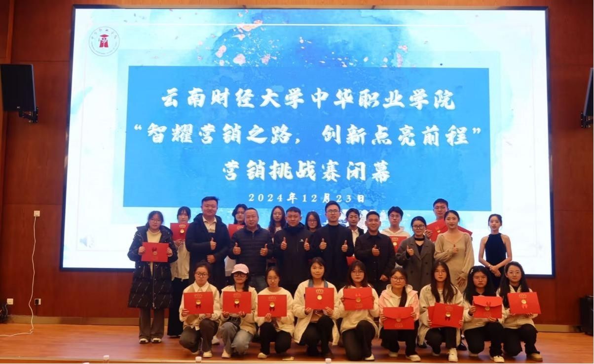 12月23日,中华职业学院“智耀营销之路,创新点亮前程”营销挑战赛闭幕式在安宁校区鹏云一栋附101报告厅举行。大赛自9月23日启动以来,吸引了81支队伍近500名同学参加。经过3个月的激烈角逐,比赛产生了11支优胜队伍,16名同学获评“最佳实践之星”。