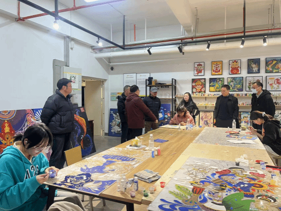 会后,财大附中一行参观了学院工作室。成蕊详细介绍了工作室的特色、项目开展及学生作品情况。