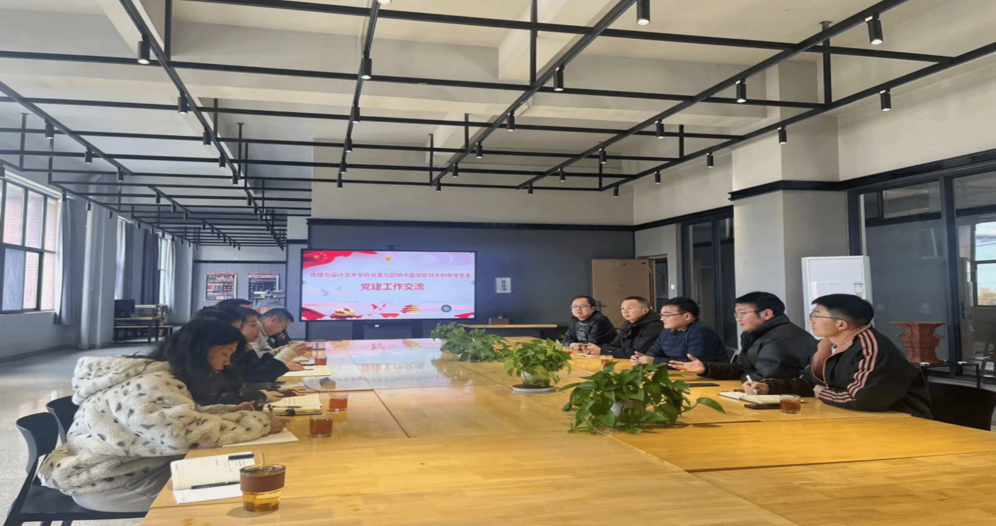 1月9日,传媒与设计艺术学院党委与昆明市盘龙区财大附中党总支在bat365在线中国官网登录入口安宁校区齐远楼303会议室举行党建工作交流座谈。财大附中党总支书记普川、副书记陈海星、副校长车应森,传媒与设计艺术学院党委书记张波、院长袁洪、副院长崔木扬,本科第三党支部书记王璐、本科第二党支部副书记成蕊及教师党员代表韦艺韬、边紫亚参加会议。座谈会由张波主持。