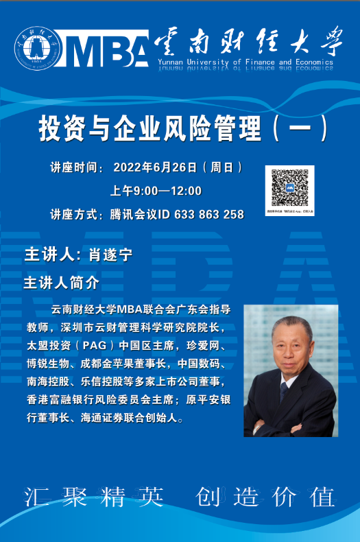 上一条:【6月26日】MBA讲座:投资与企业风险管理(二)
