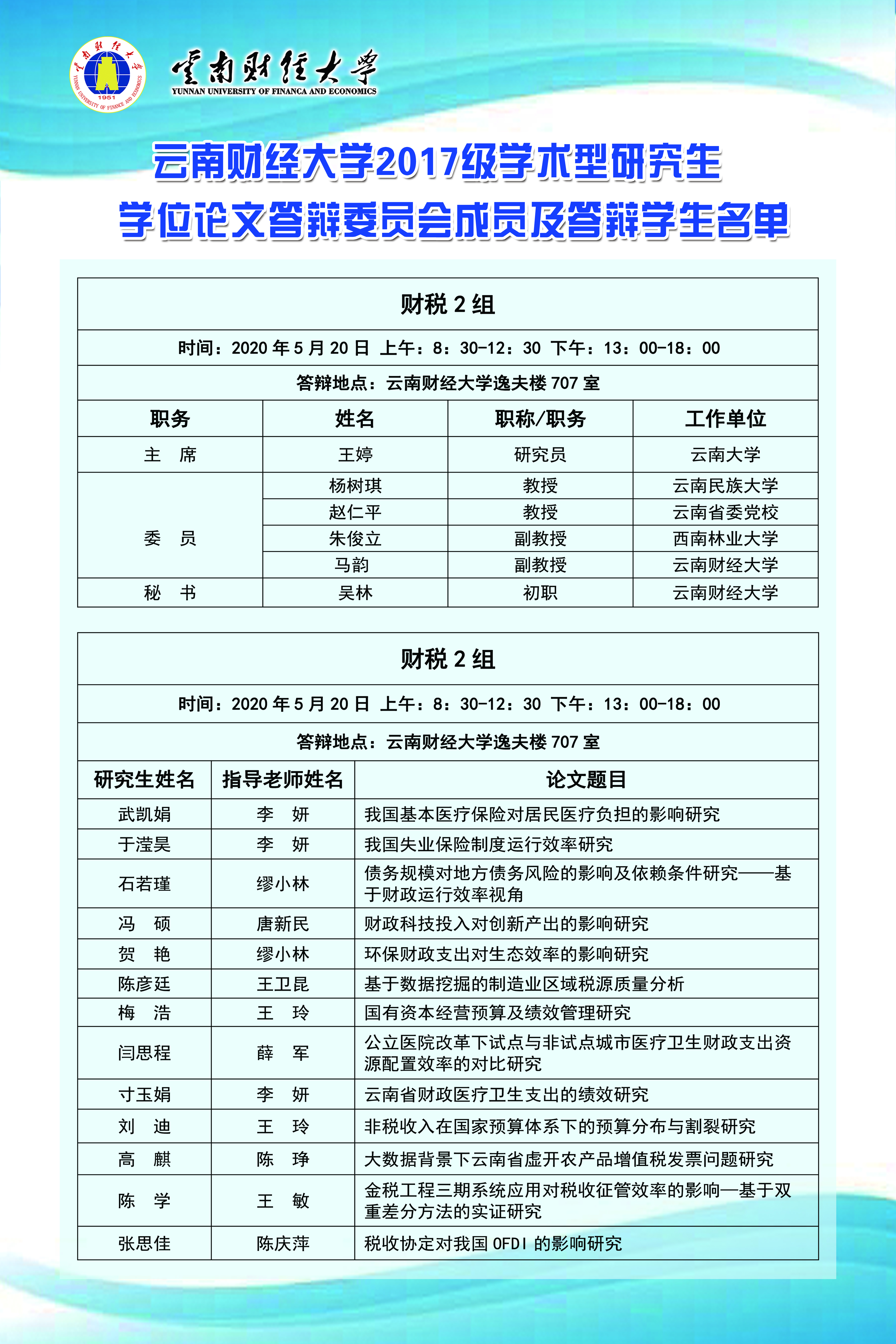 上一条:2020年春季研究生学位论文答辩(六)