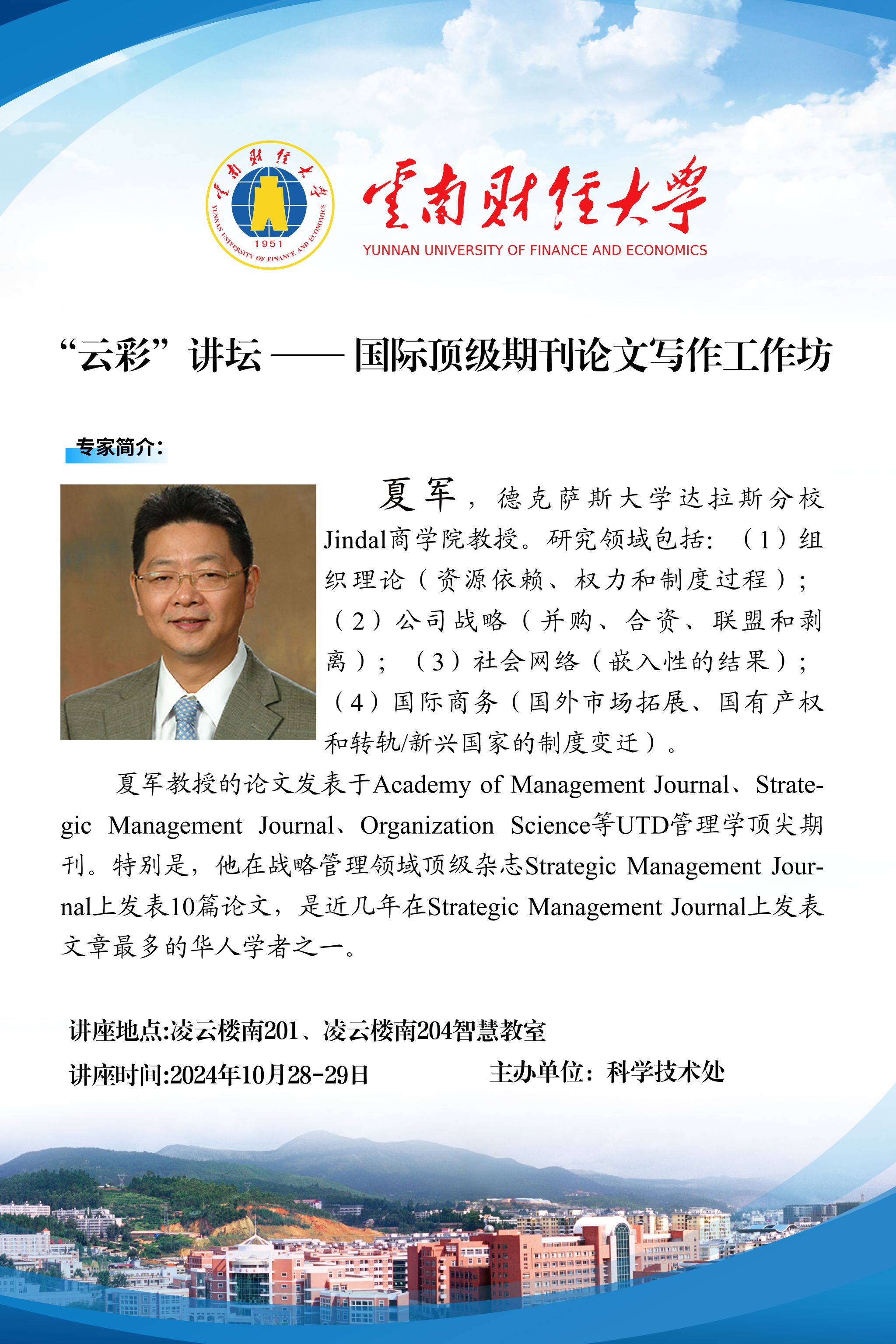 为推进高水平财经大学建设,落实学校第五次党代会提出的“1186”战略任务,实施“有组织科研”,提升bat365官网教师学术研究能力,产出更好高质量的科研成果,学校拟定于2024年10月28日至10月29日举办国际顶级期刊论文写作工作坊,欢迎学校教职工和研究生积极参加。