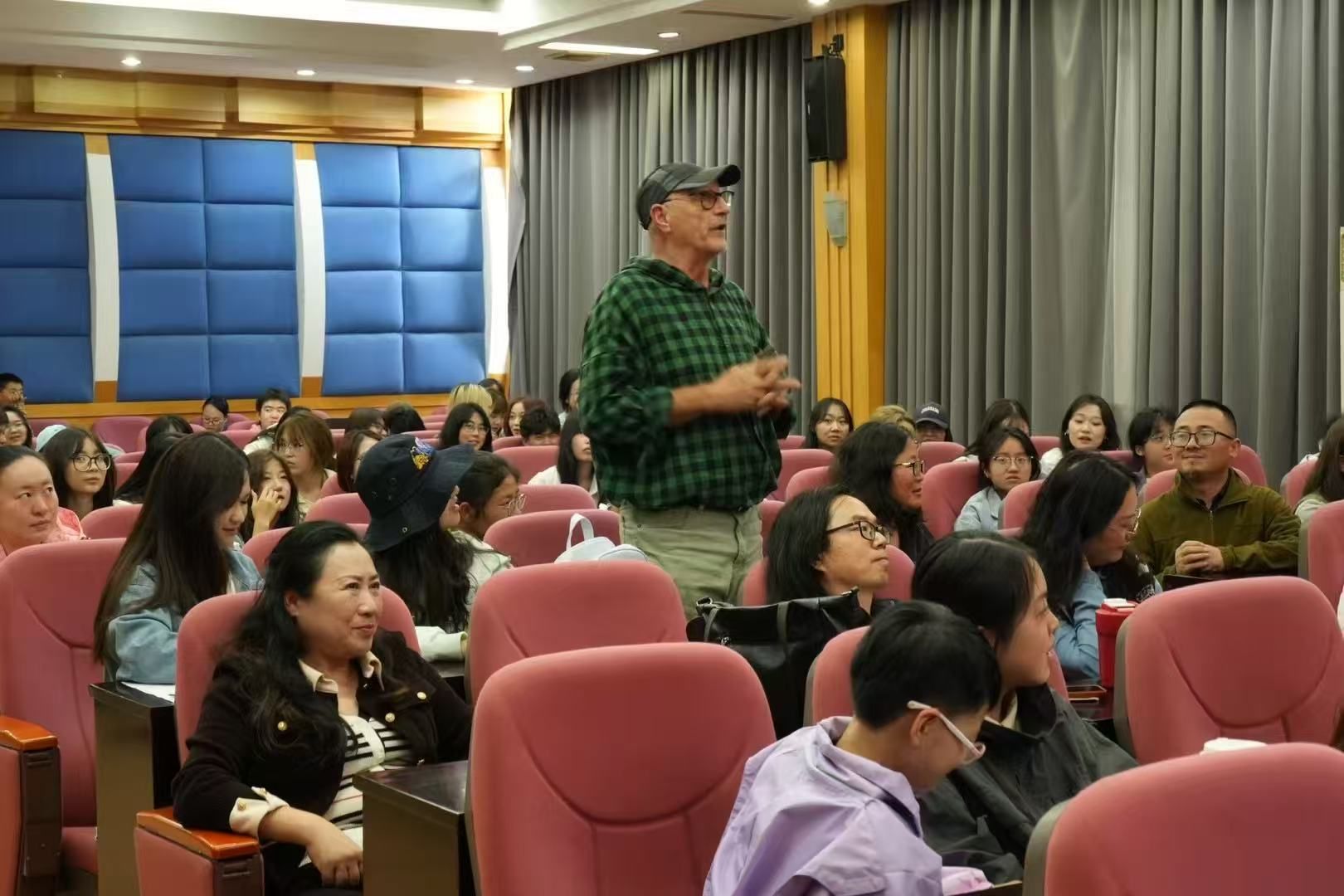 “这不是一场孤独的远征。”刘庆杨特别强调了志愿者群体的贡献。他讲述了招募过程中收到的来自国内外各大高校、各个专业的300多封申请信,以及团队成员在戈壁荒漠中共同克服物资短缺、艰苦工作条件的故事,生动的细节引发现场阵阵掌声。