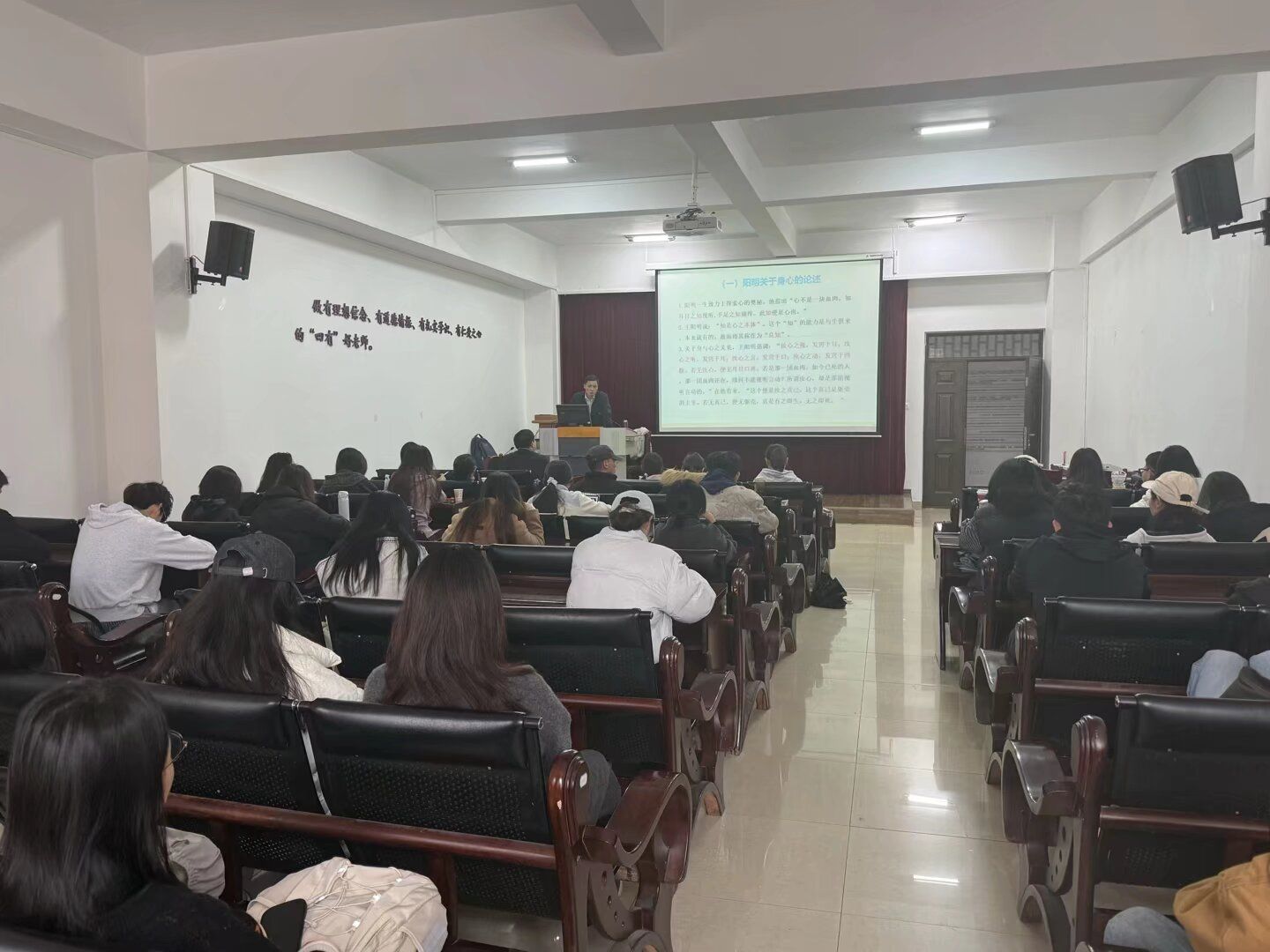 11 月 4 日上午,2025 云岭大讲堂(云财讲坛)第二讲在bat365官网博远楼 103 会议室举行。云南大学文学院博士生导师谢青松教授受邀以“阳明心学与身心平衡”为题作分享,以帮助同学们应对快节奏生活带来的压力与焦虑。