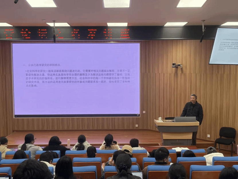 竺乾威教授从公共行政学的学科特性出发,系统阐述了该学科的核心特点、研究中的问题意识与理论创新路径,并就论文选题、研究方法等与现场师生进行交流。