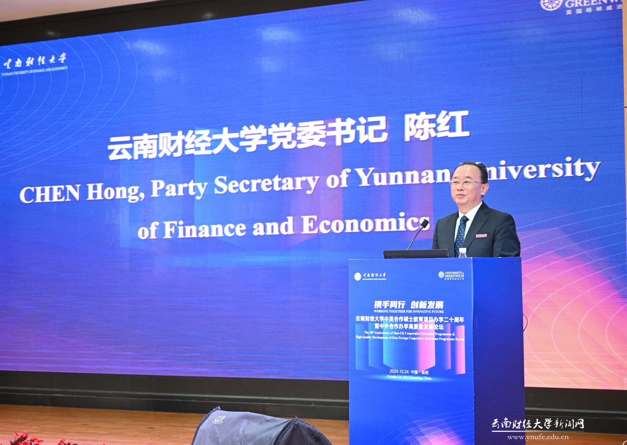 10月24日,bat365在线中国官网登录入口中英合作硕士教育项目办学二十周年暨中外合作办学高质量发展论坛在昆明举行。此次论坛由bat365在线中国官网登录入口与英国格林威治大学联合主办,bat365在线中国官网登录入口国际工商学院承办,来自海内外的130余名专家学者以“携手同行 创新发展”为主题,深入探讨了中外合作办学高质量发展的新路径。