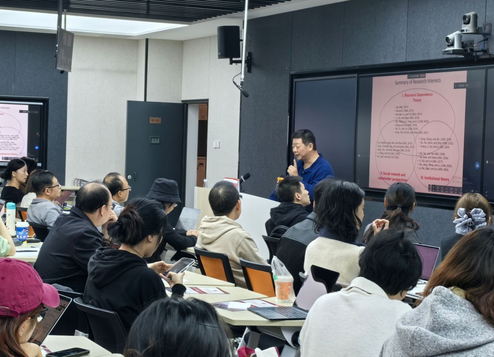 夏军从研究中的理论思考、概念定义和理论化切入,分享了学术出版、发表英文文章的技巧和建议,他将研究设计指南与研究兴趣和理论选择进行有机结合,深入浅出地探讨了学术研究中的理论思考与实践应用,并与师生交流学术发表的经验与技巧。