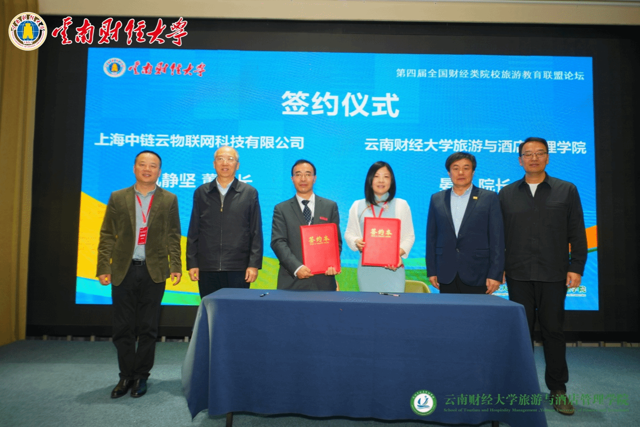 会上,上海中链云物联网科技有限公司与bat365在线中国官网登录入口旅游与酒店管理学院举行战略合作签约,晏雄和上海中链云物联网科技有限公司董事长仇静坚共同为“云南绿色文旅数字商学院”揭牌。仇静坚代表上海中链云物联网科技有限公司向bat365在线中国官网登录入口旅游与酒店管理学院捐赠AI绿色文旅数字商学院系统一套,以支持学院数字文旅教育建设发展。