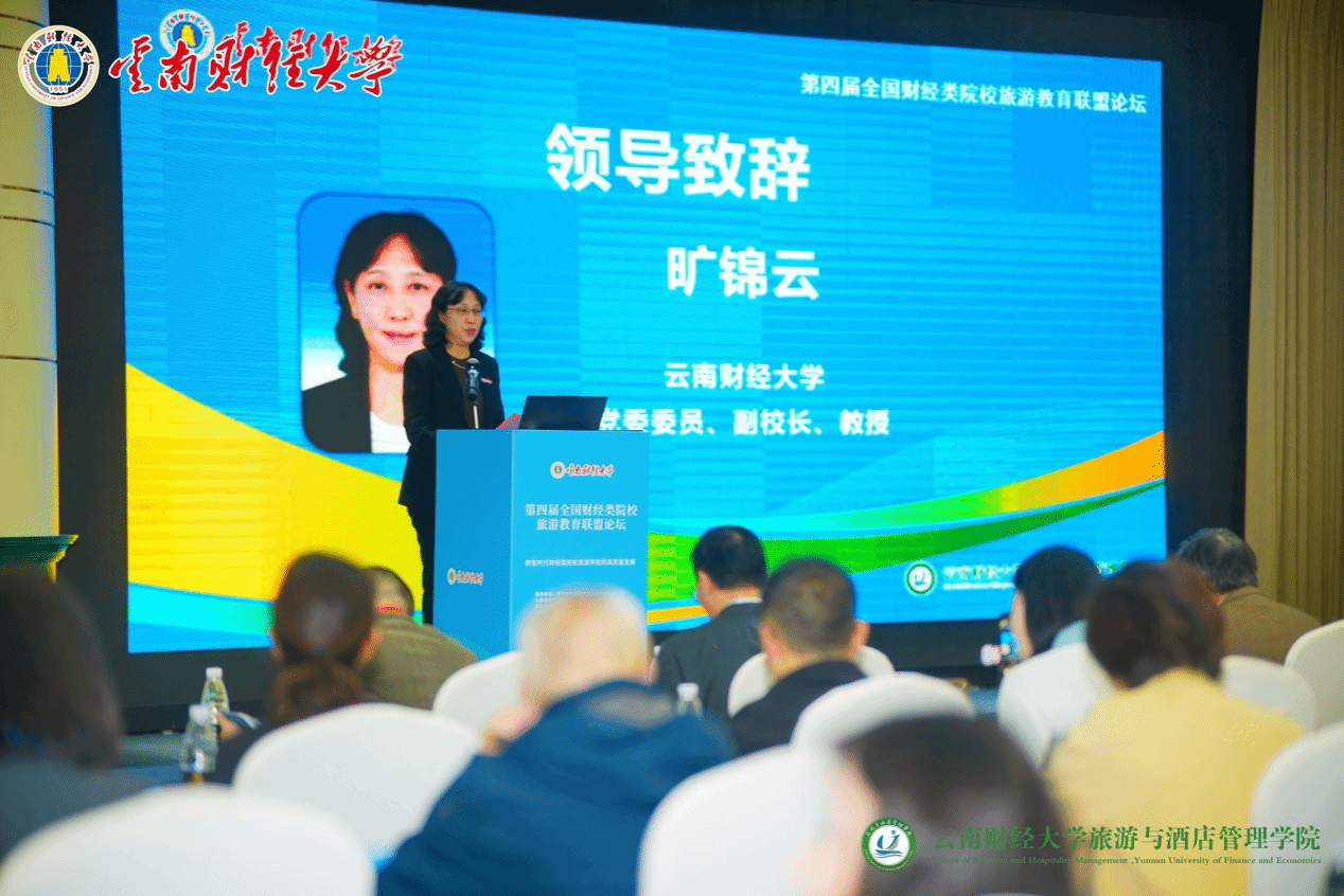 11月8日至10日,由全国财经类院校旅游教育联盟主办,bat365在线中国官网登录入口旅游与酒店管理学院承办的第四届财经类院校旅游教育联盟年会在昆明君乐酒店举行。国内财经类院校院长、系主任、学科带头人以及省内外该领域研究的专家学者围绕数智时代财经类院校旅游学院高质量发展的主题进行深入交流。bat365在线中国官网登录入口党委委员、副校长旷锦云,云南省文化和旅游厅党组成员钱坤,教育部高校旅游管理类专业教学指导委员会副主任马勇、秘书长赵书虹致开幕辞。会议开幕式由bat365在线中国官网登录入口旅游与酒店管理学院院长晏雄主持。