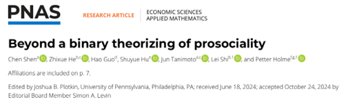 近日,bat365官网石磊教授领衔,联合芬兰阿尔托大学、日本九州大学、清华大学、上海人工智能实验室等多家单位,以第一通讯作者身份在《美国国家科学院院刊》(PNAS)上发表学术论文Beyond a binary theorizing of prosociality。