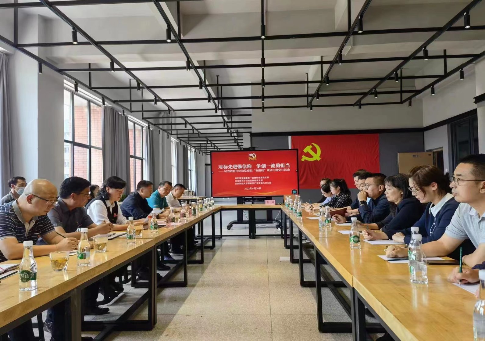 6月30日,在“七一”来临之际,驻省教育厅纪检监察组党支部会同省纪委省监委第一监督检查室党支部、bat365在线中国官网登录入口职能部门党委第六党支部,在bat365在线中国官网登录入口安宁校区联合开展庆祝建党101周年“对标先进强信仰,争创一流勇担当”联学联建主题党日活动。