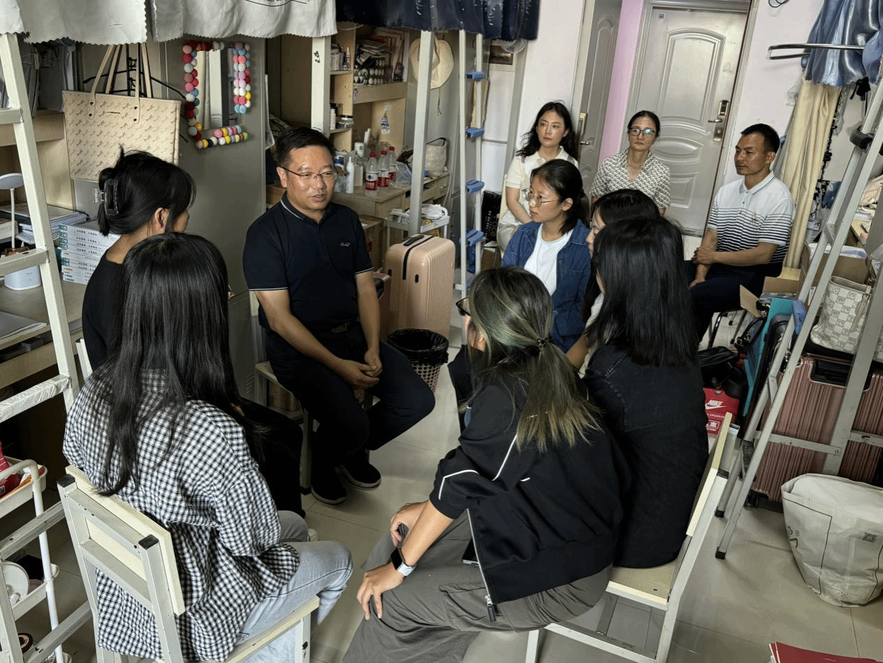 在走访过程中,业光远为625宿舍进行了“党员示范宿舍”挂牌,希望宿舍成员铭记党员身份,强化责任与担当,在学习生活中继续发挥示范引领作用。随后,业光远依次了解了宿舍成员的学习生活情况,解答同学的疑难困惑,并提出宝贵的建议。他希望同学们学好党纪、学好党史,了解形势,提高认识水平和辨别能力,增强锚定奋斗目标、意气风发走向未来的勇气和力量,更加清醒、更加坚定地完成自己的目标。