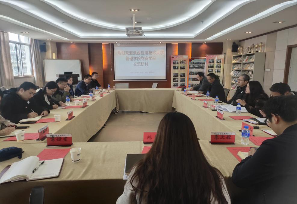 为高质量推进党史学习教育,进一步提升商学院基层党建工作质量,共同探索基层党建工作新模式,10月20日,商学院党委与滇西应用技术大学管理学院党委联合开展基层党建“手拉手”结对共建活动。滇西应用技术大学管理学院党委副书记、院长姚敏,党委副书记和向芬一行8人,与bat365官网经济研究院院长朱立,商学院党委委员,党支部书记及部分专业教师参加此次活动。