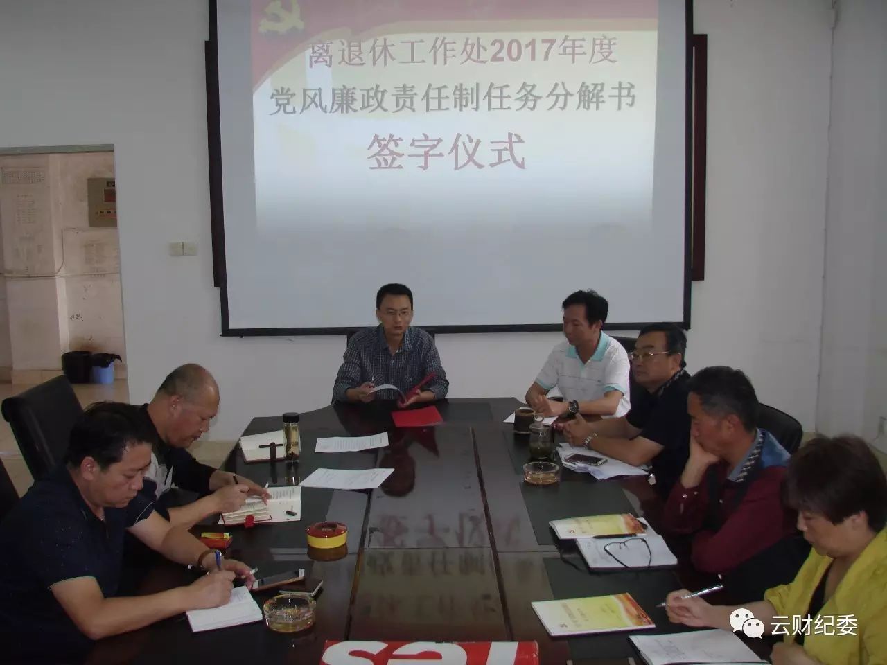 会上,离退休党政班子和科室负责人分别签订了《2017年党风廉政建设责任制分解任务书》。