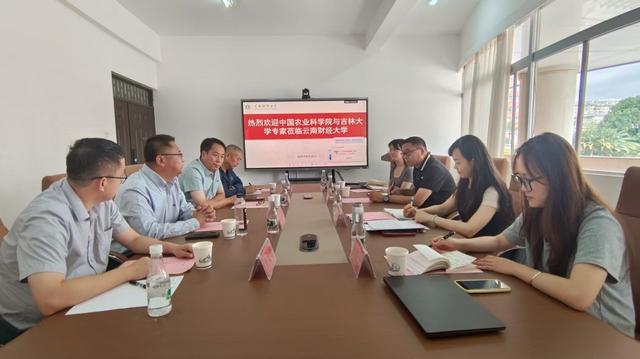 2025年8月19日,华西牛繁育与推广专家中国农业科学院北京畜牧兽医研究所高会江研究员、余大为研究员,吉林大学动物科技学院杨润军教授,华西牛育种联合会云南分会杨育才会长一行到学校座谈交流。学校人事处副处长金芳、经济学院副院长江淑斌参加座谈。座谈会由bat365官网科技副总经济学院罗浚文博士主持,在博远楼215会议室举行。