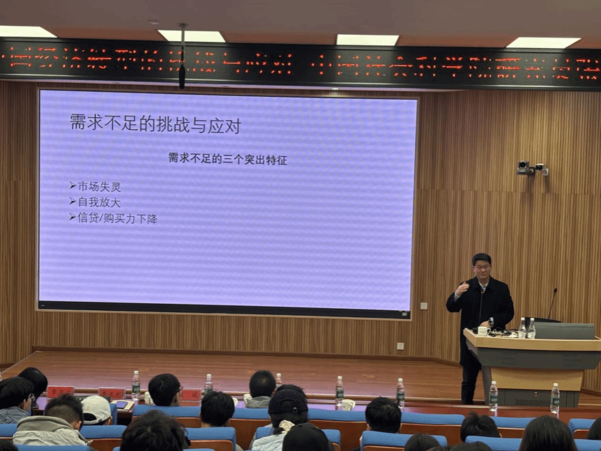 李正彪副校长总结发言,对张斌研究员的深入分析与精彩报告表示感谢。他指出,报告为学校师生把握当前经济形势和国家战略重点提供了新视角。高校在服务国家和区域经济社会发展中肩负重要使命,经济学科应围绕国家重大战略需求进一步加强理论研究与政策研究,推动科研成果向决策咨询和社会治理领域转化,提升学校智库建设水平。