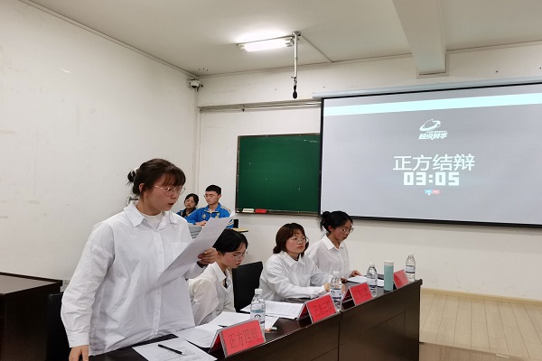 经过初赛和复赛持续两周左右的激烈角逐,进入半决赛的队伍有扑天雕队(经济21—2)、对对对队(国贸21—1)、不会辩论只会说队(经济21—1)、杠杠的棒队(国贸21—1),本次半决赛分为两场。