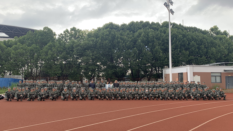 2021年7月6日下午,经济学院党委书记陈永飞、副书记杨雯、辅导员陈琳、杨宏伟到训练场看望慰问2019级参加军训的学生。