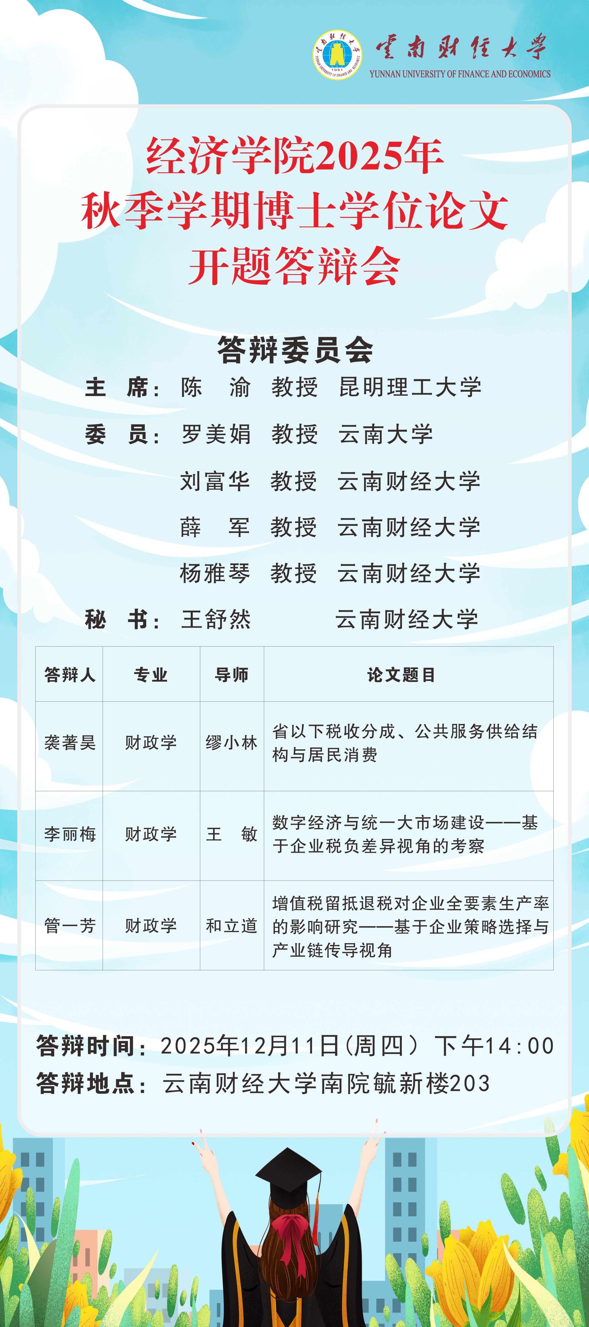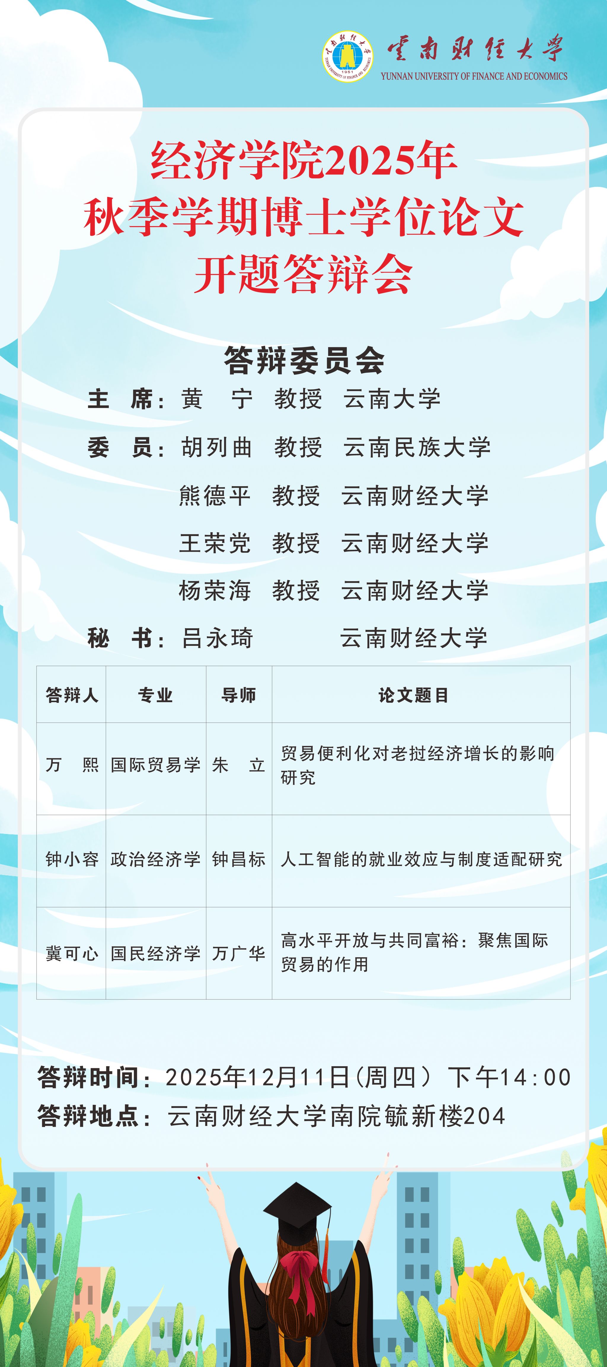 经济学院2025年秋季学期博士学位论文开题答辩会预告