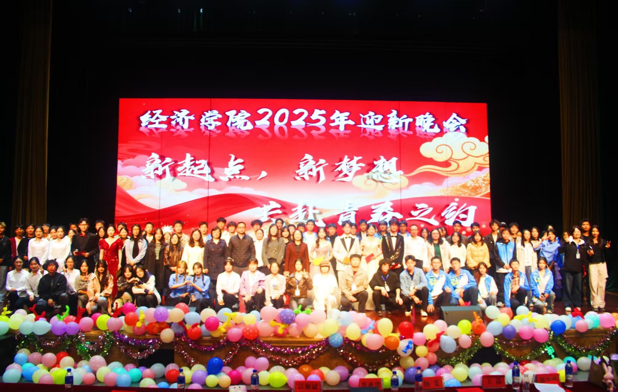 伴随着主持人的温馨谢幕,本次迎新晚会圆满落下帷幕。整场活动不仅展现了经济学院师生多才多艺、团结向上的精神风貌,更通过富有仪式感的环节设计,强化了新生的归属感和集体认同。这场晚会不仅是欢迎,更是启航——它为2025级新生顺利融入大学生活、书写人生新篇章注入了温暖而坚定的力量。