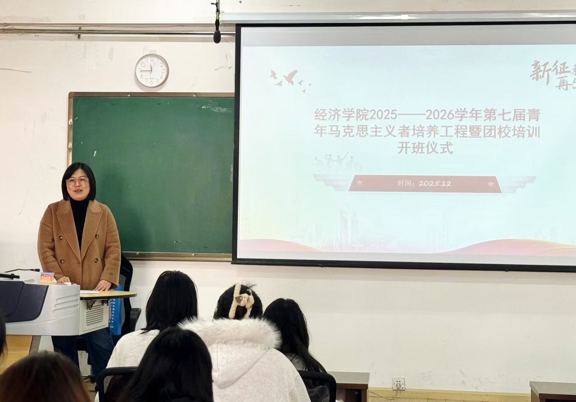2025年12月30日,经济学院在博远楼203教室举行第七届青年马克思主义者培养工程暨团校培训开班仪式,仪式由团委负责人幸莹主持,第七届“青马班”全体学员参加。