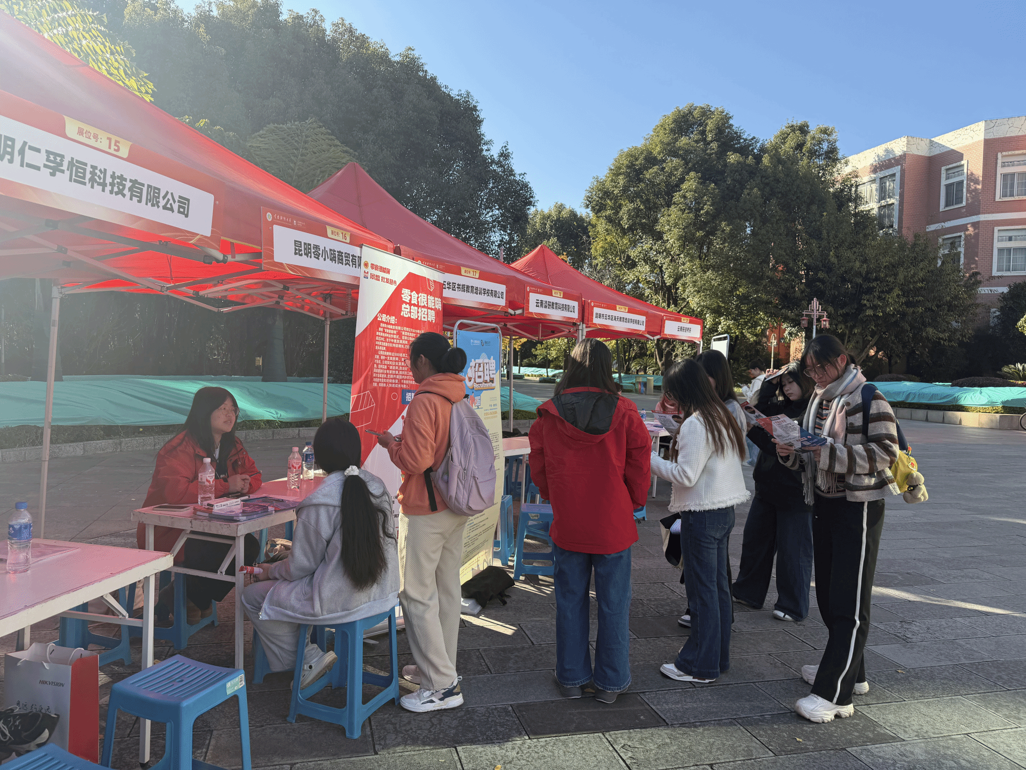 为进一步拓宽毕业生就业渠道,扎实做好就业指导与服务工作,推动毕业生实现更高质量、更充分就业,经济学院于12月5日在南院图书馆前举办了周五“职”通车专场招聘会。