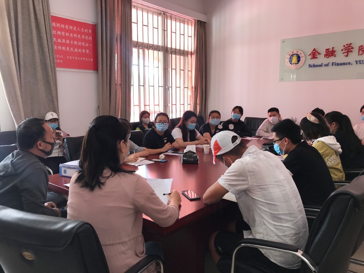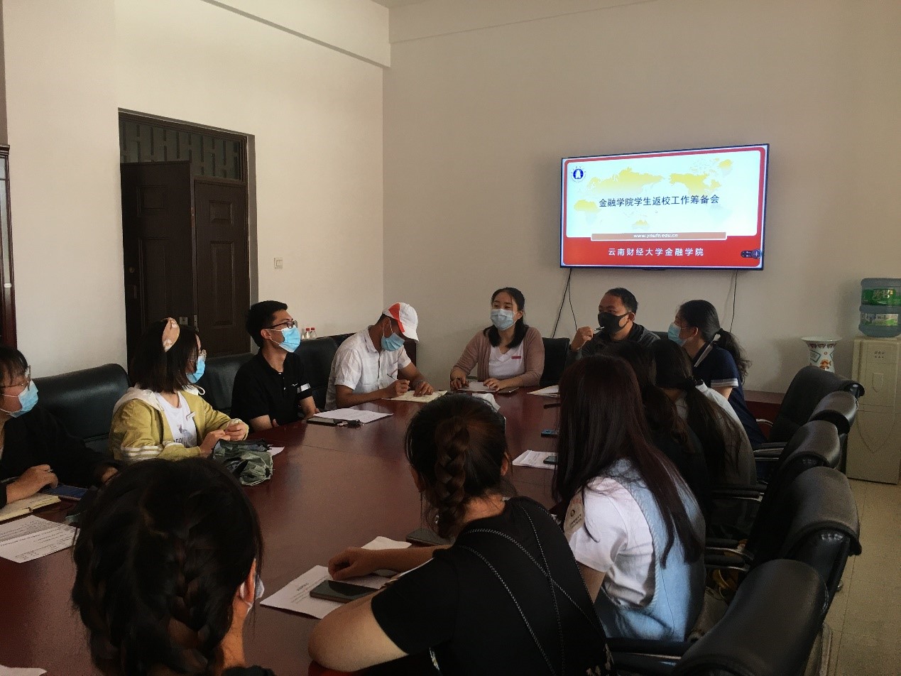 为保障金融学院学生返校工作平稳有序,学院领导、老师们召开多次会议,通力合作,确认开学报道流程、协调开学工作安排、制定应急预案等,并于5月12日中午召开学生返校工作筹备会。金融学院学生管理科科长郭良骥,团委书记任琳,辅导员王福云与沈迪出席本次会议,金融学院20名学生骨干与志愿者参加会议。会议由学生管理科科长郭良骥主持。