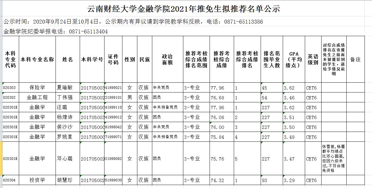 bat365在线中国官网登录入口金融学院2021年推免生拟推荐名单公示