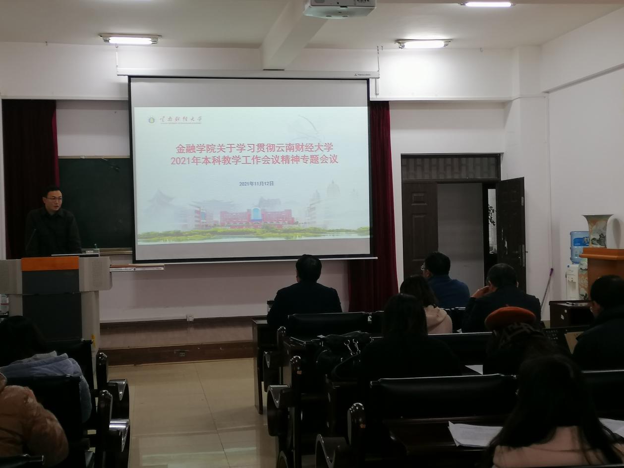 2021年11月12日下午,金融院组织全体教师在博远楼103会议室举行“学习贯彻bat365在线中国官网登录入口2021年本科教学工作会议精神”专题会议,会议由院党委书记李德清主持。