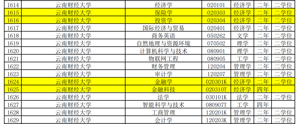 近日,根据《教育部关于公布2021年度普通高等学院本科专业备案和审批结果的通知》(教高函〔2021〕14号)文件,我院2021年申报的金融科技本科专业成功获批,为云南省首个金融科技本科专业。金融学、保险学和投资学等三个专业二学位成功备案。金融科技专业将于2022年秋季正式招生,学制4年。金融科技专业授予经济学学位。