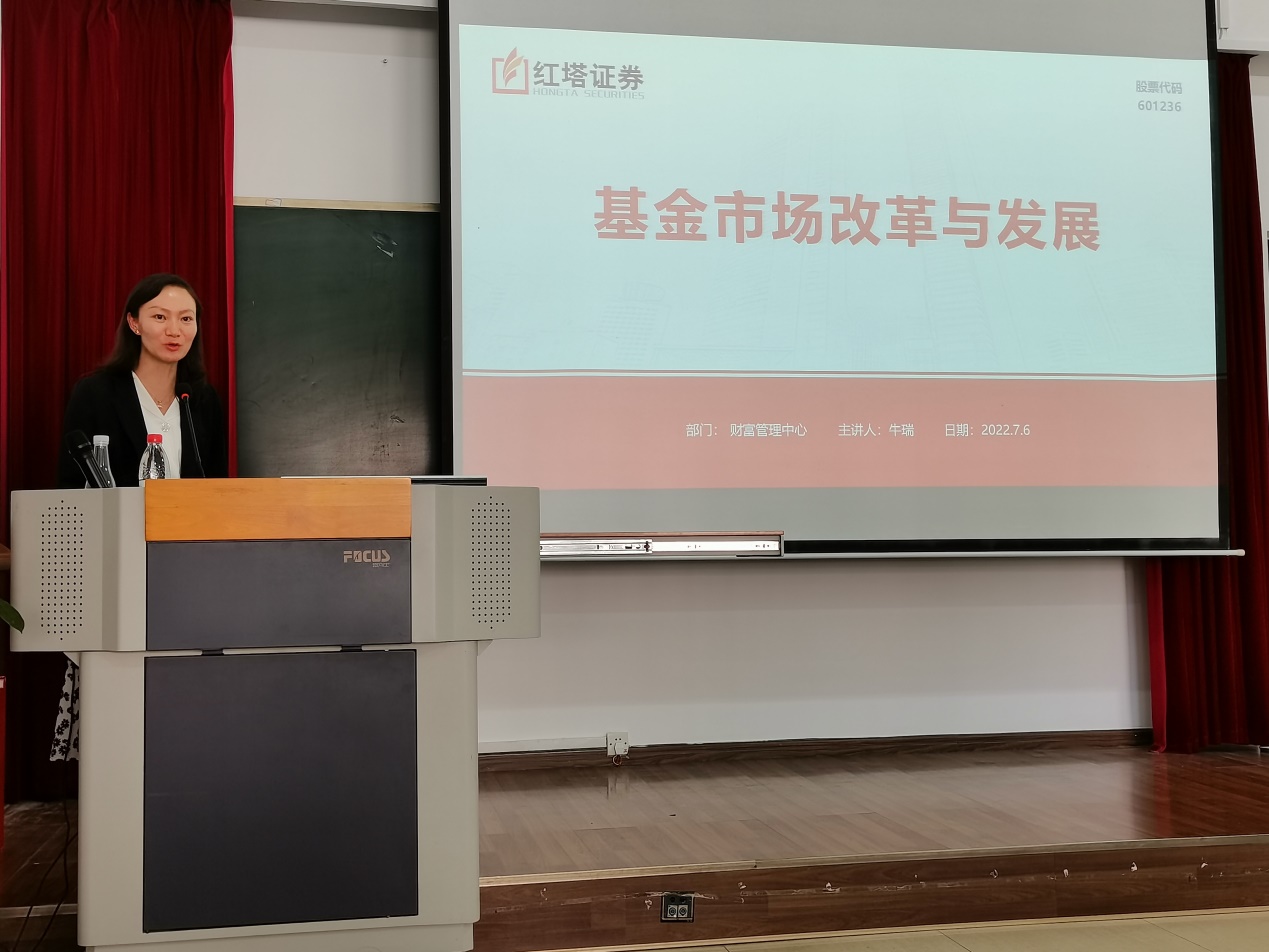 2022年7月6日下午,金融学院携手红塔证券举办了“证券市场前沿与实务”系列讲座第五讲:基金市场改革与发展。