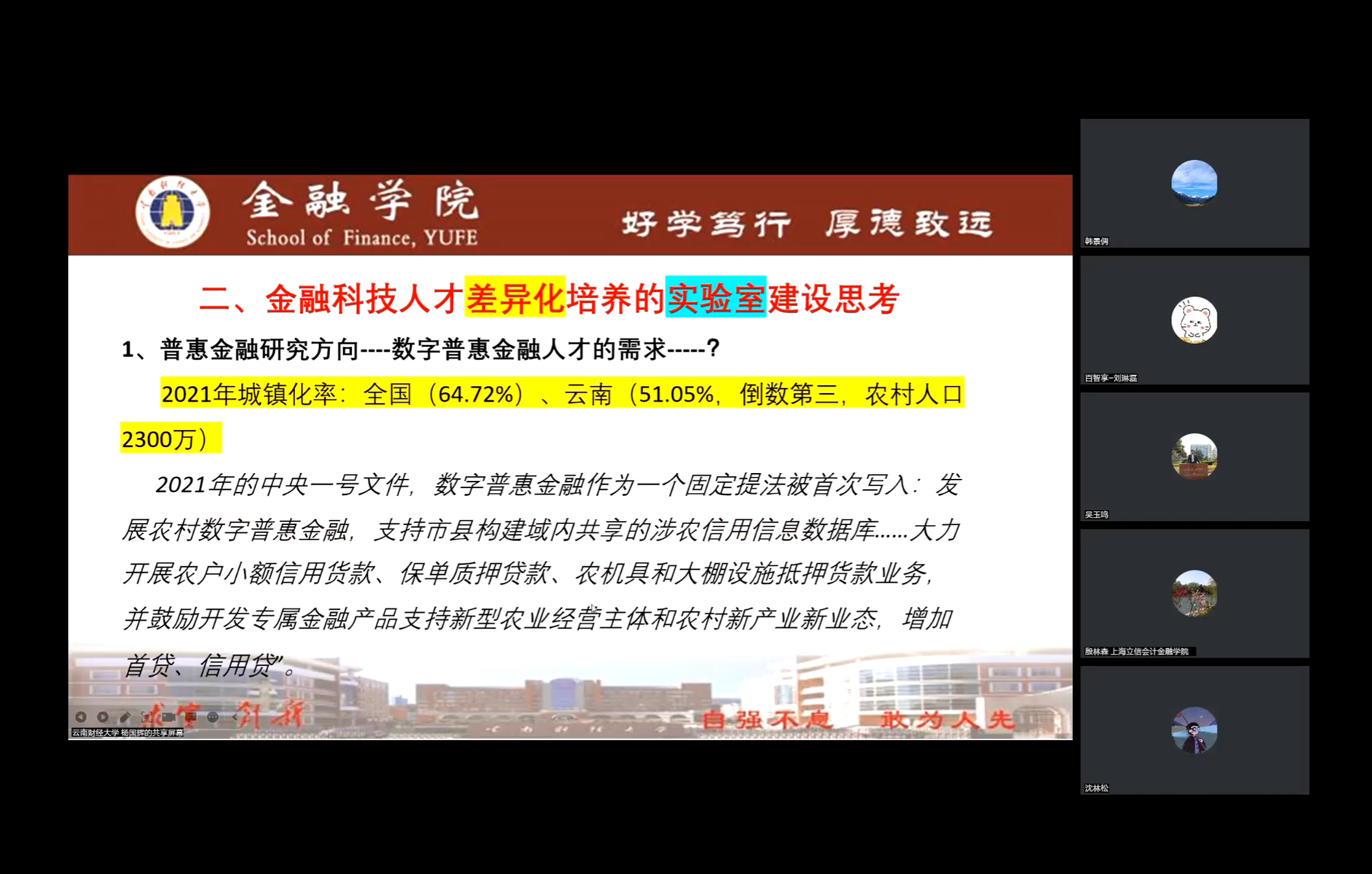 2022年12月17日,金融学院副院长杨国辉受邀参加第十三届中国高等财经教育校长论坛暨中国高等教育学会高等财经教育分会第18届年会,会议主题聚焦“中国高等财经教育数字化建设:新规划 新基建 新质量”,来自中国人民大学、中央财经大学、上海财经大学等知名高校的专家学者分享了“支撑财经教育高质量发展与数字化升级”、“面向双一流建设标准的财经教育与数智技术融合”、“教育数字化建设背景下新财经复合创新人才培养”等话题。杨国辉作为实验资源跨校共享分论坛代表作了“数字经济时代金融人才培养思考”发言,与参会专家交流了金融学院金融科技人才培养的差异化思考,主要聚焦数字普惠金融、跨境贸易区块链金融、产业链数字金融人才培养,得到了与会专家的充分肯定,并表示未来希望能与云财进一步合作,共同探索金融科技人才培养方式。