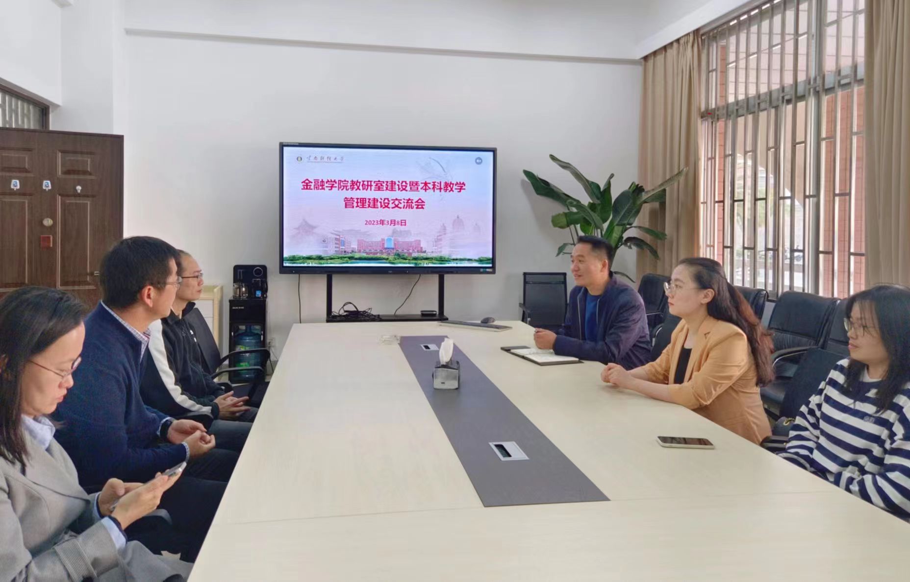 2023年3月8日,金融学院由教务科牵头举行了新学期教研室建设暨本科教学管理交流会。首先,教学副院长杨国辉给大家传达了学校近期将启动金牌课程和金牌教研室建设的总体思想,并提出要强化课程组师资能力,落实课程组负责人制度,通过高质量课程的建设来促进教师教学能力的提升,以此提升人才培养质量。然后,金融系、投资系和保险系三个教研室主任、副主任就课程建设、教研室活动开展、挂牌课程安排、期末考试管理等方面进行了充分交流讨论。最后,教务科工作人员听取了大家关于本科教学管理的意见建议,为下一步更好地服务师生奠定了基础。